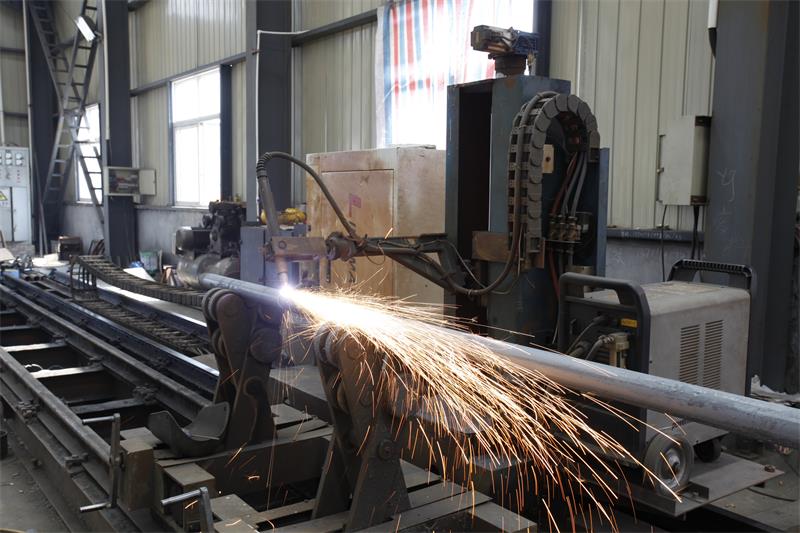 管桁架相贯节点依据现行国家标准《钢结构设计规范》;设计合适的节点结构,尽量避免节点构件偏心,或者将偏心限定在允许范围内:-0.55d0≤e≤0.25d0(d0为圆管直径;e为偏心距);在实施焊接前对管件焊缝周边进行预热处理,当达到一定温度后再施焊,同时焊接中要预防焊接构件局部温度过高,可先施焊收缩量较大的部位,如施焊空间允许,可以采用多人分段焊进行焊接,能够有效降低焊接残余应力,减小焊缝角变形、翘角变形和焊缝的弯曲度。